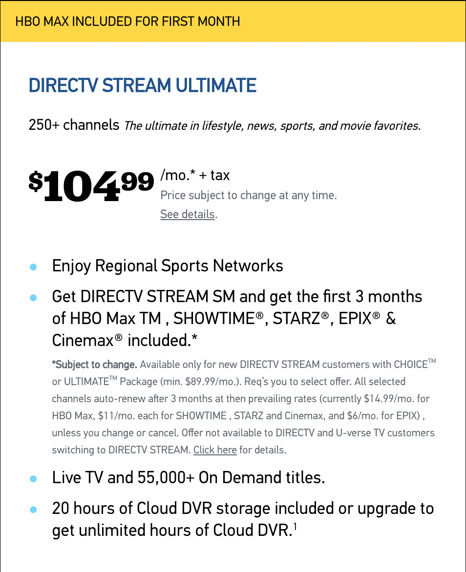 Data connection req'd. Recordings expire after 90 days. In a series recording, max 30 episodes stored with unlimited hours of cloud DVR and max 10 episodes stored with 20 hours or cloud DVR (oldest deleated first which may be in less than 90 days.) Restrictions apply